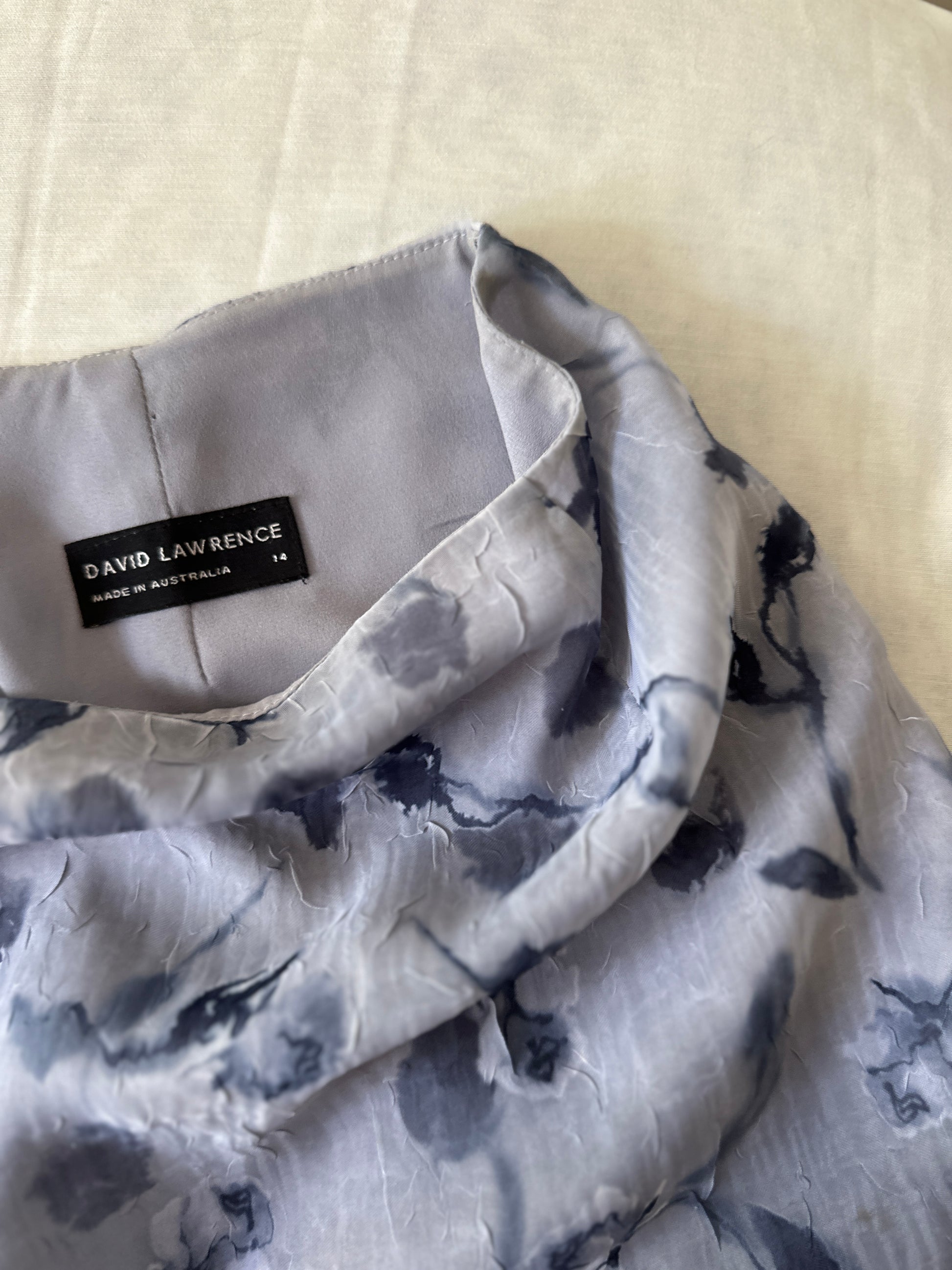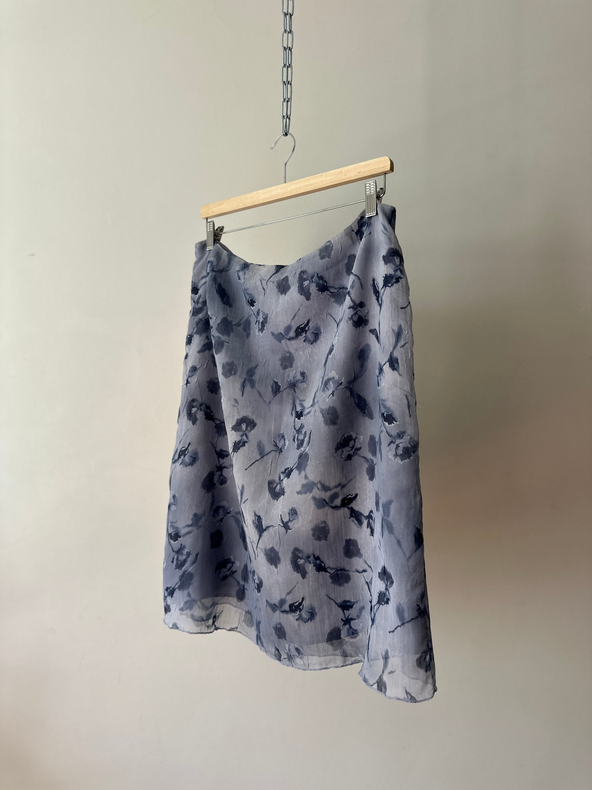 description. a gorgeous mid length straight skirt, coming just below the knee. perfect for those who have a taste for 90s aesthetic and trends, it's definitely suited for the Monica or Rachel type, with such a sweet two toned blue floral pattern, it would sit best on the mid waist