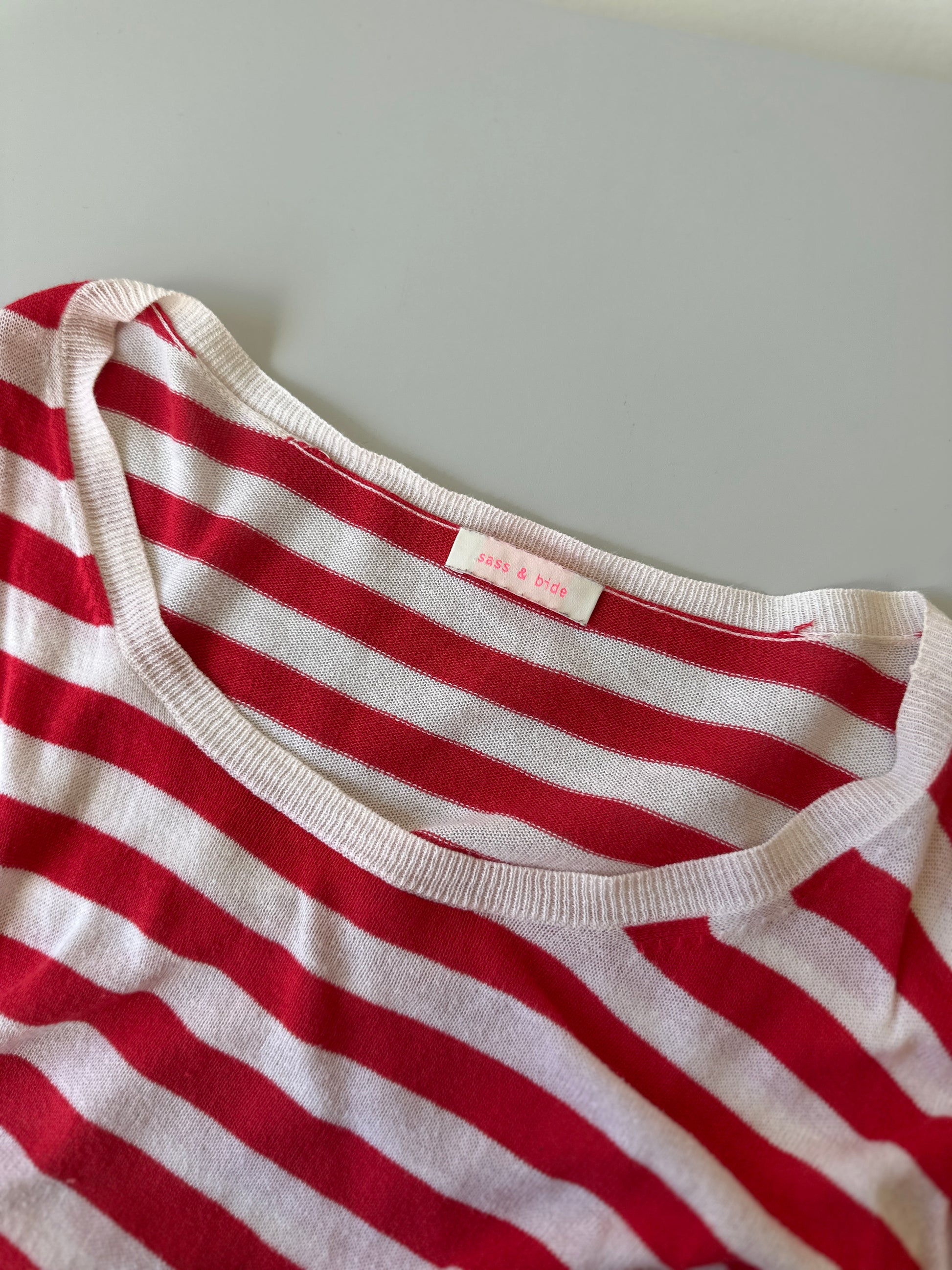 description. a great super soft, slightly sheer, red and white candy cane horizontal striped cardigan