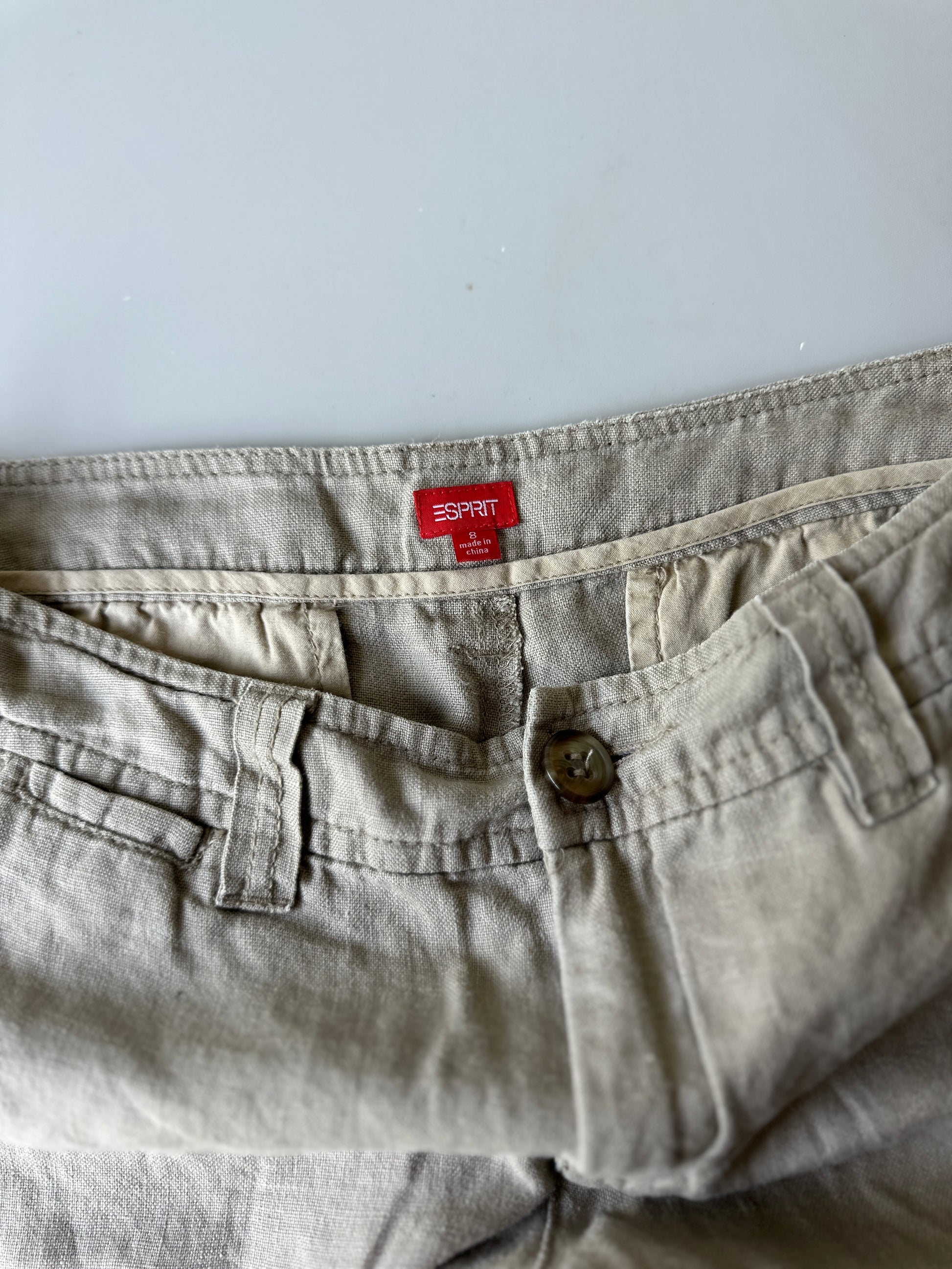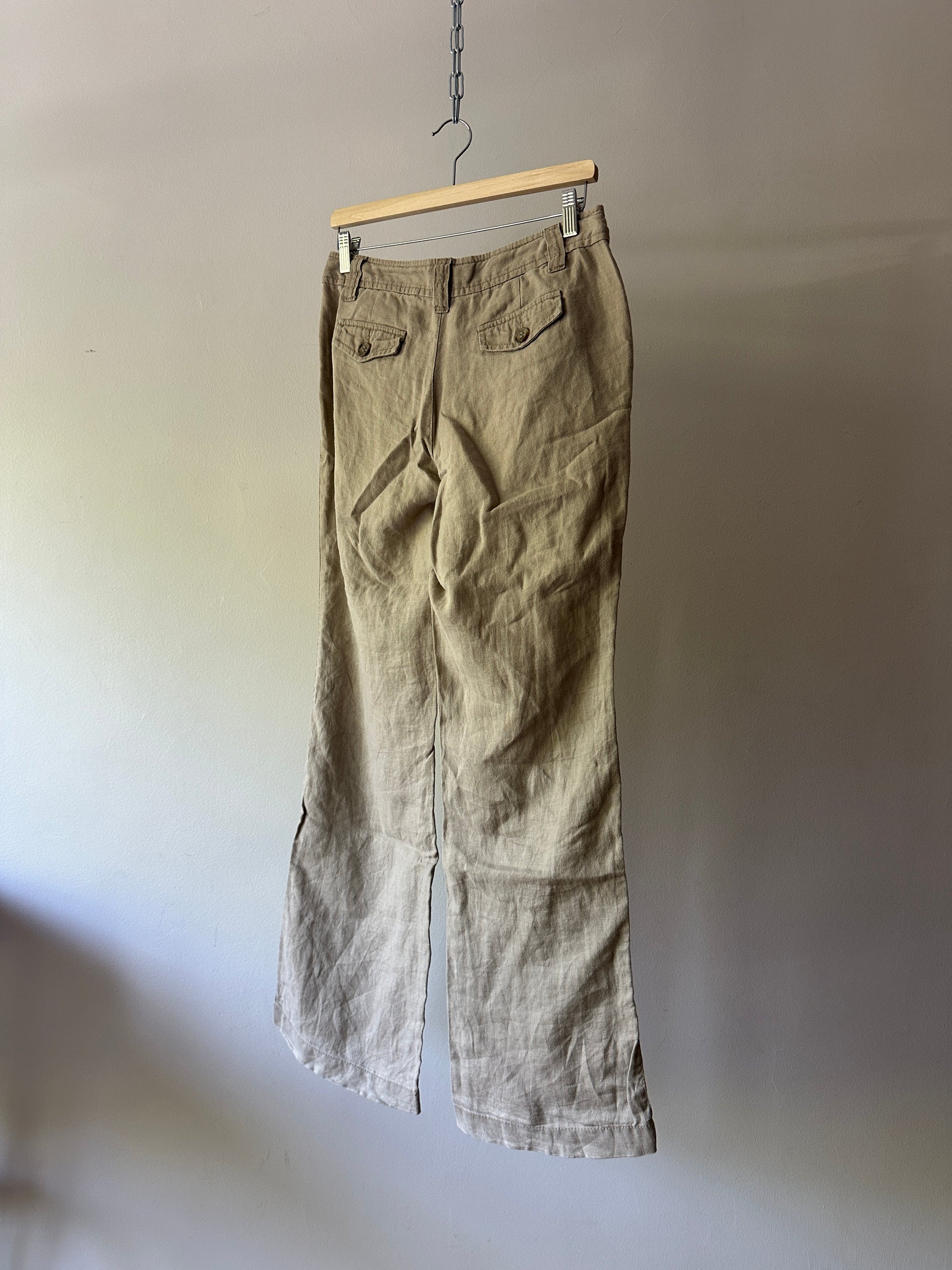 description. a very simple piece to add to the closet but will honestly go with anything and everything. the nicest shade of beige, these linen pants had a perfect straight leg fit, belt loops and some great pockets for store all your fun things