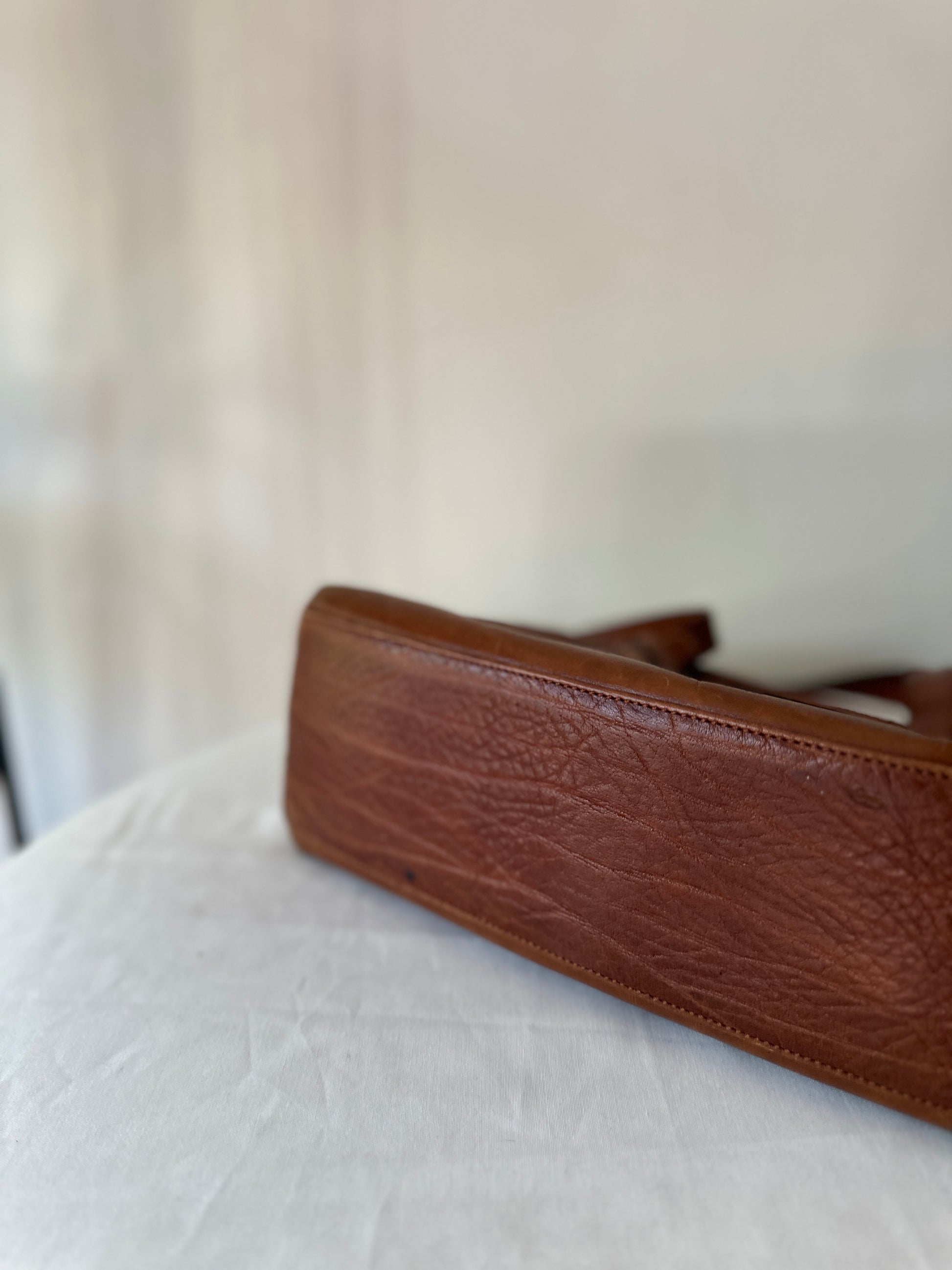 description. this is by far one of my favourite bags that I have sourced. it may be a little bit too loved, but it is absolutely beautiful. the brown leather is worn in and showing so much character, with the straps being so long this large shoulder bag is perfect for anyone wanting to add to their outfit- it goes with everything. RRP 4900+ current, $400+ pre-loved
