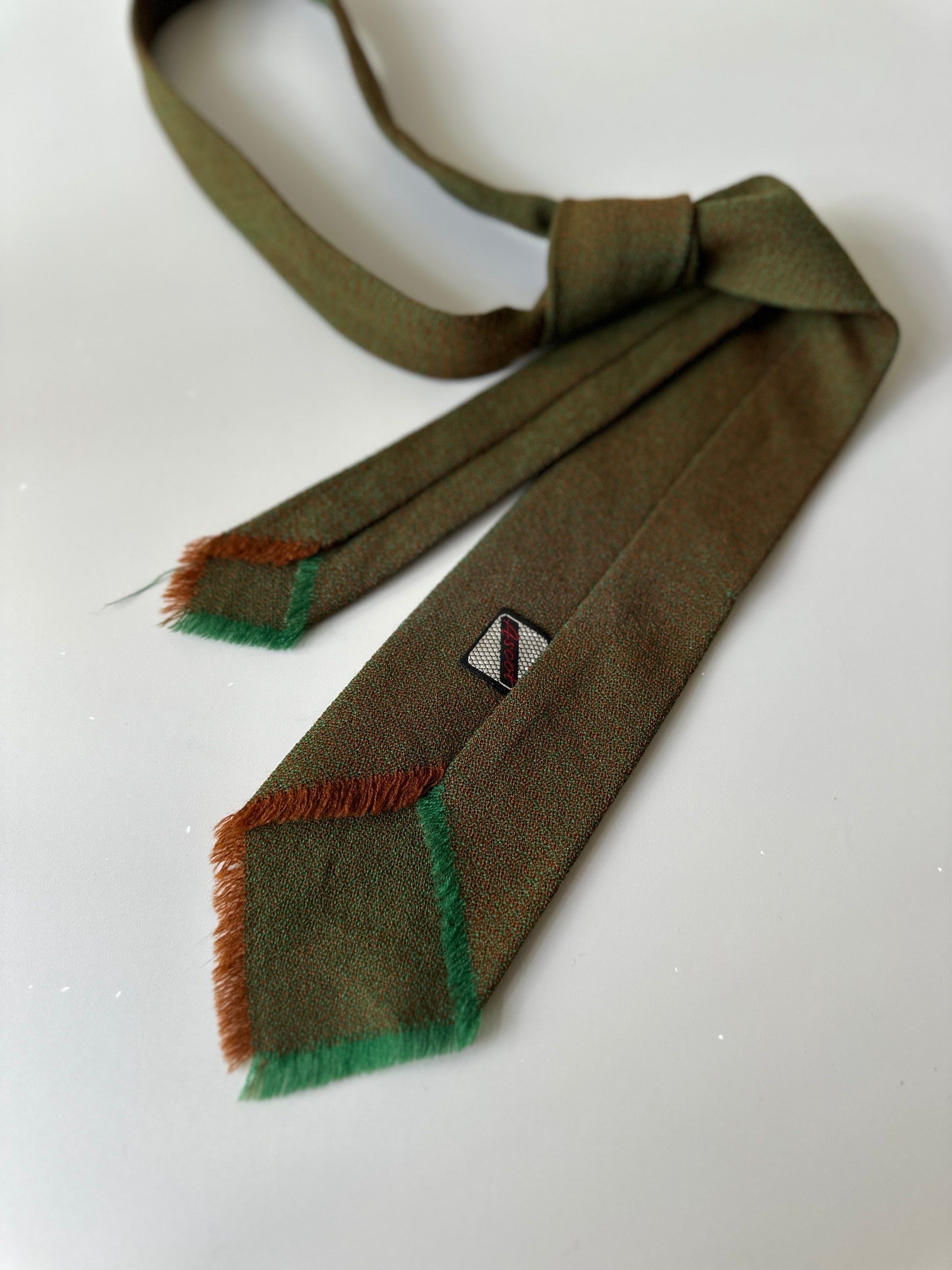 description. I'm obsessed with the colours in this tie, the two toned brown and orange coming out at the frayed bottom of the tie is super cool
