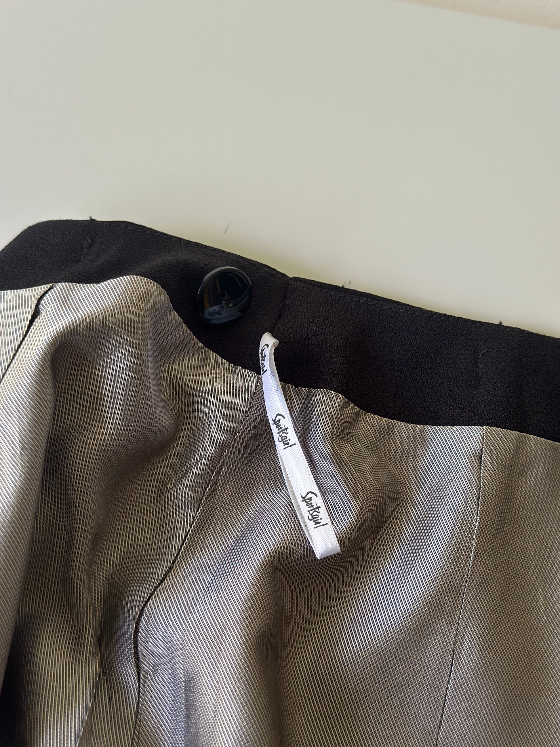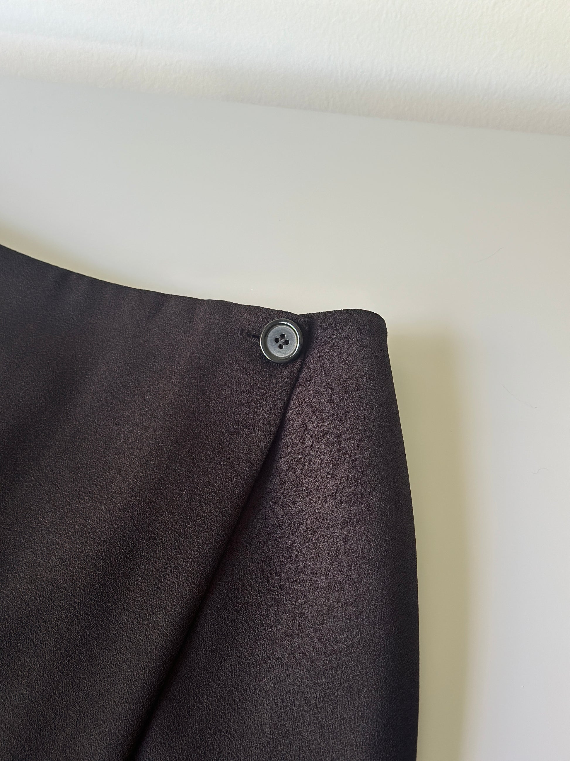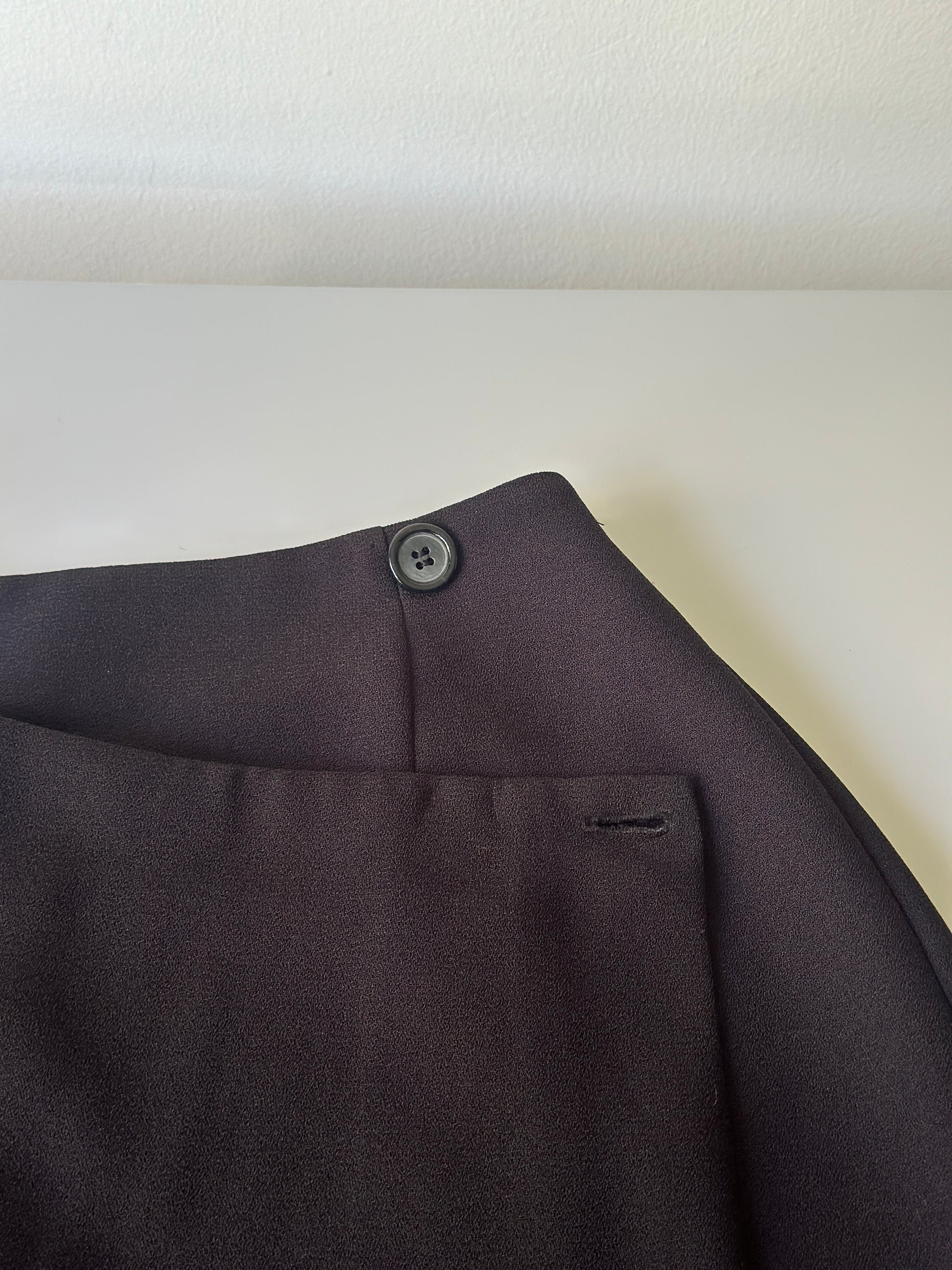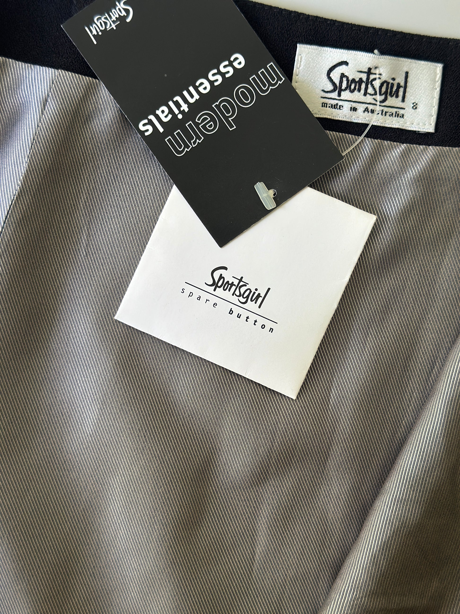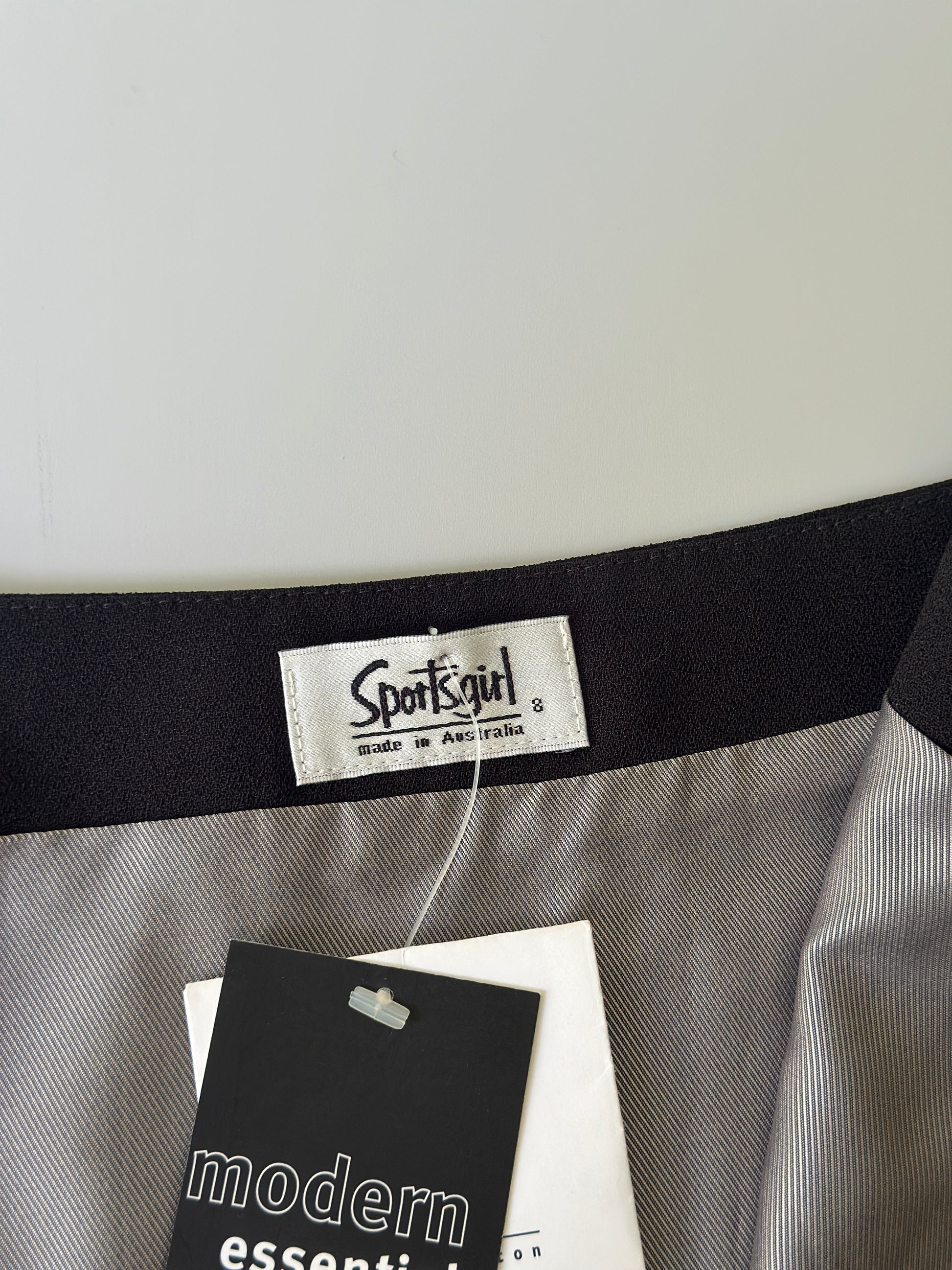 description. a double button-up skirt, wrap around front. I'd get office-core, and we love it. the tags are still on it from original 00s Sportsgirl era- comes with a spare button!