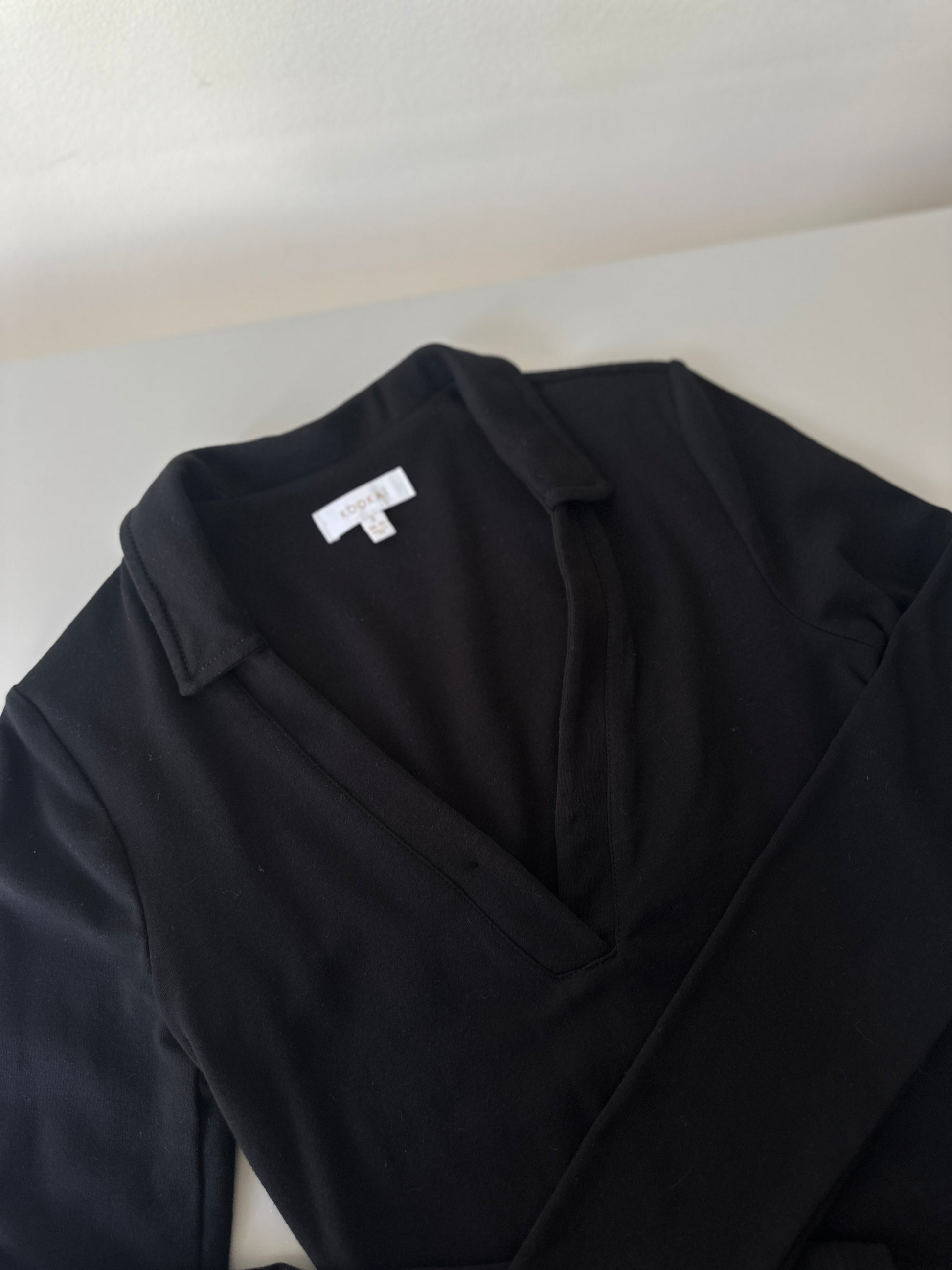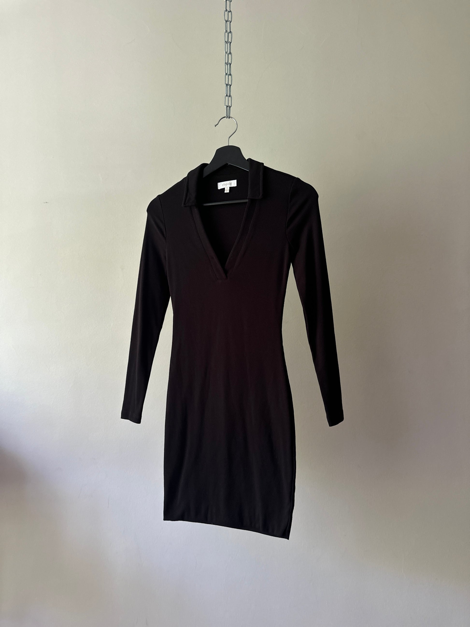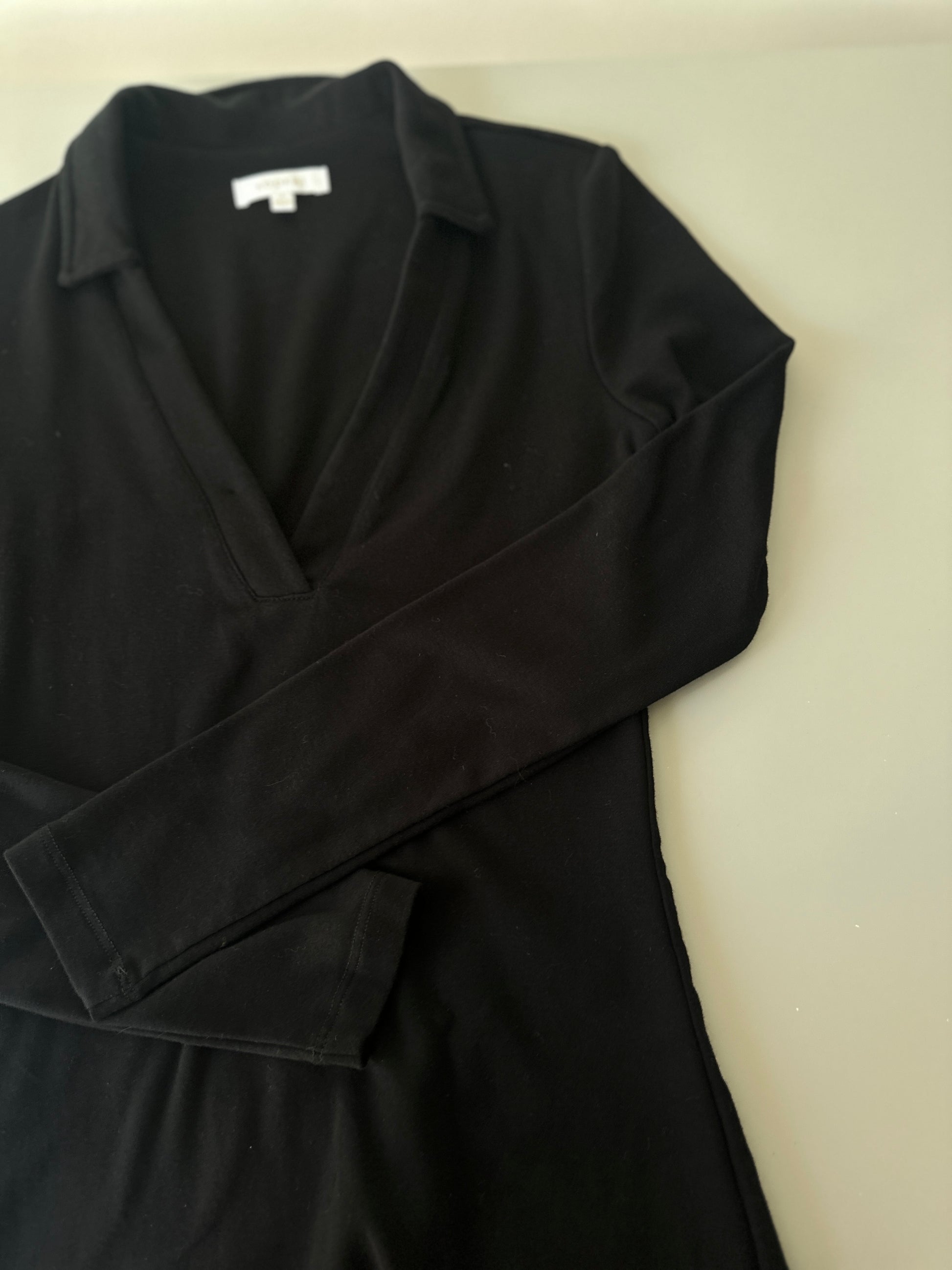 description. a cute long sleeve stretch soft material dress with a collar, perfect for a staple LBD