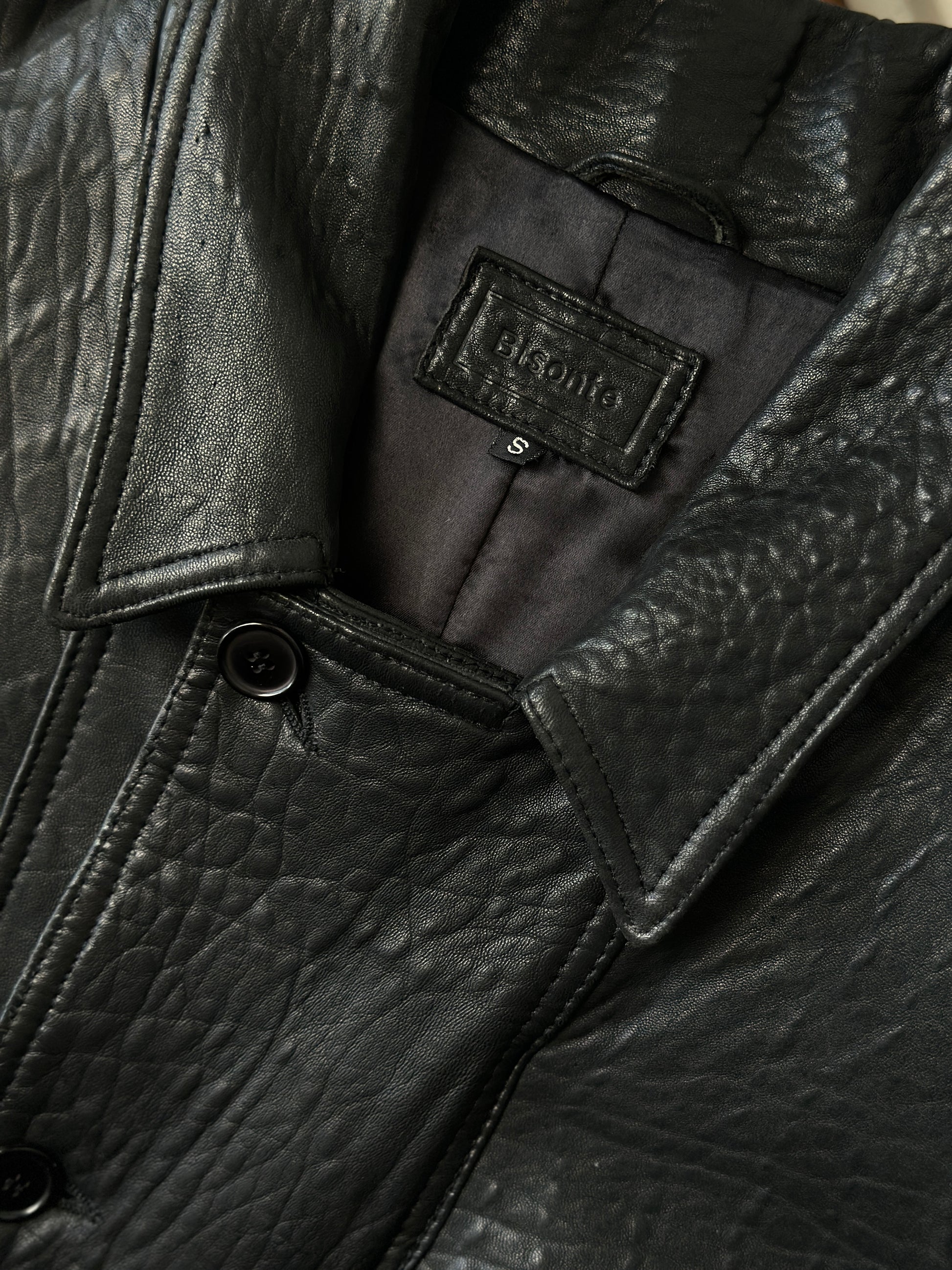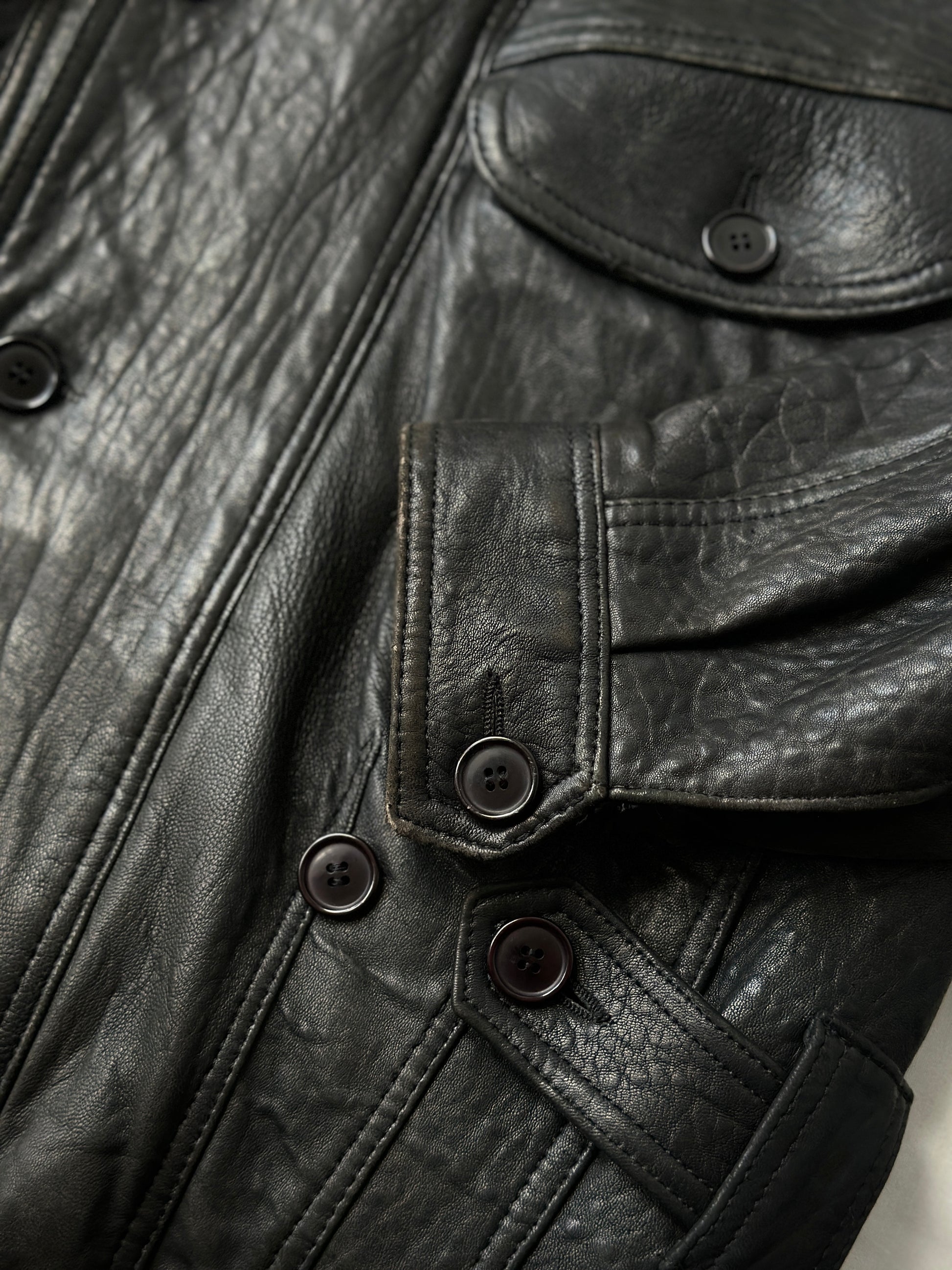 description. a fantastic pre-loved vintage leather jacket, Australian Leather and Suede Clothing Association made. there are multiple pockets outside and inside, zipper and button closure.