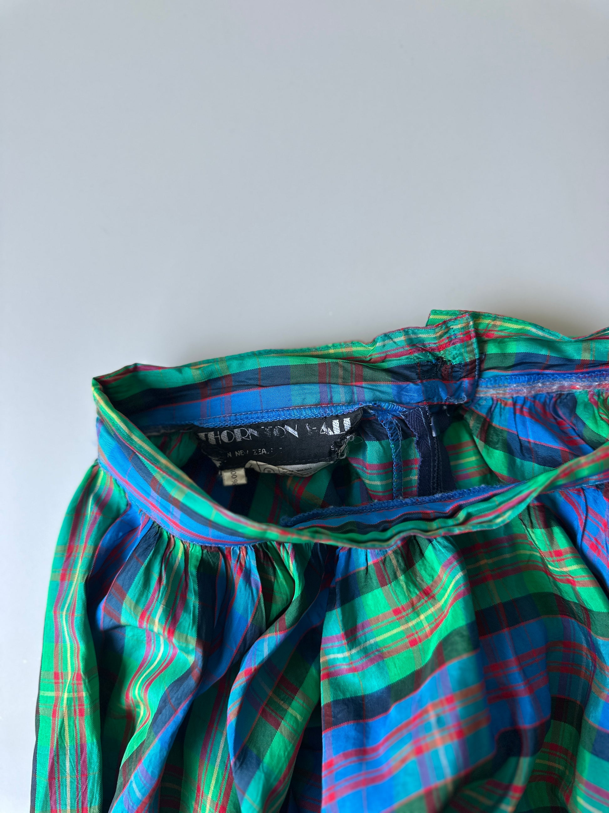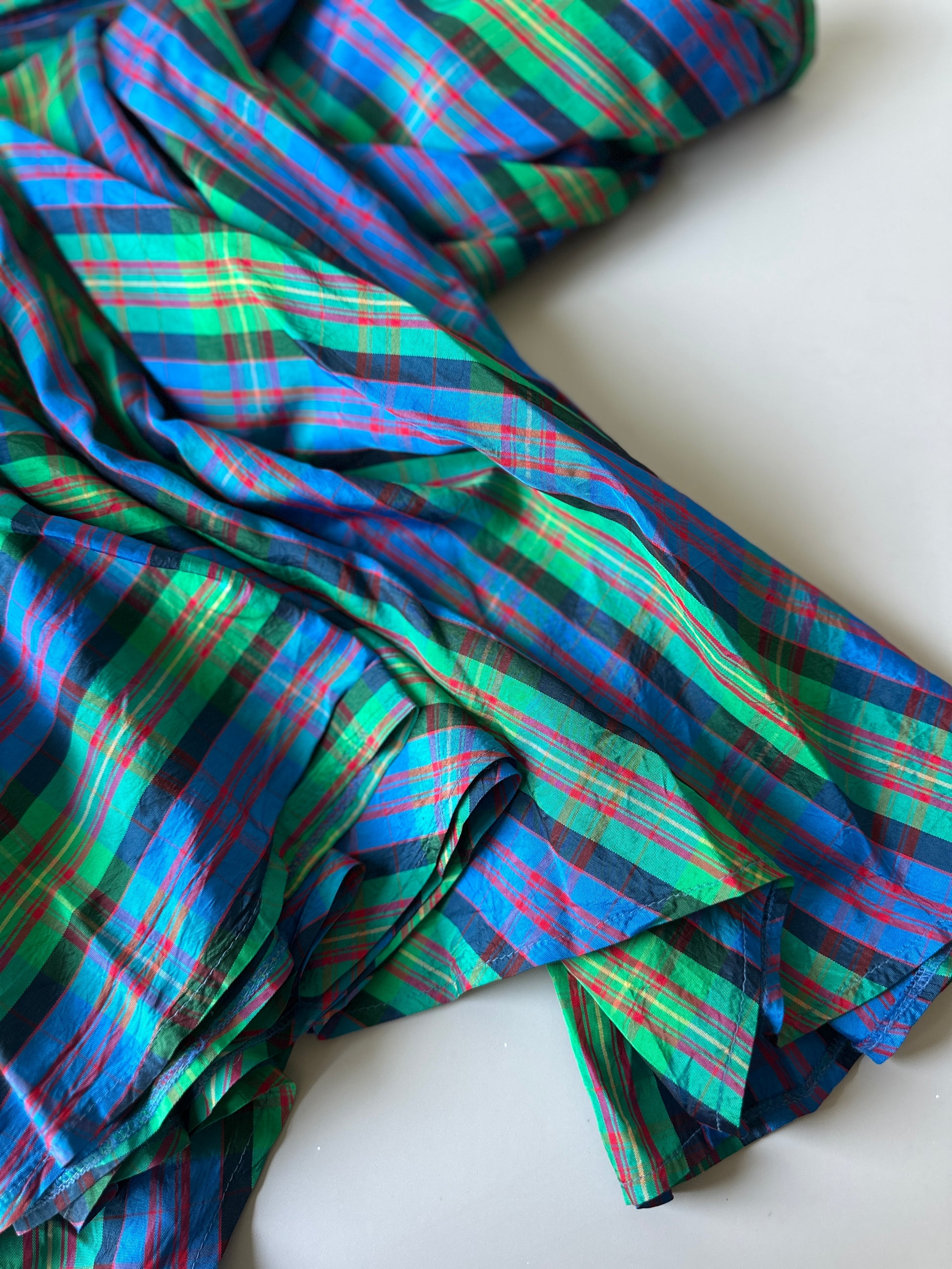 description. this is my absolute FAVOURITE skirt of ALL TIME. the tartan/gingham pattern is to die for because the colours are absolutely stunning. plus the fabric is has an opaque shimmer to it and the skirt is so full and flows amazing when on. please please please give this baby a home