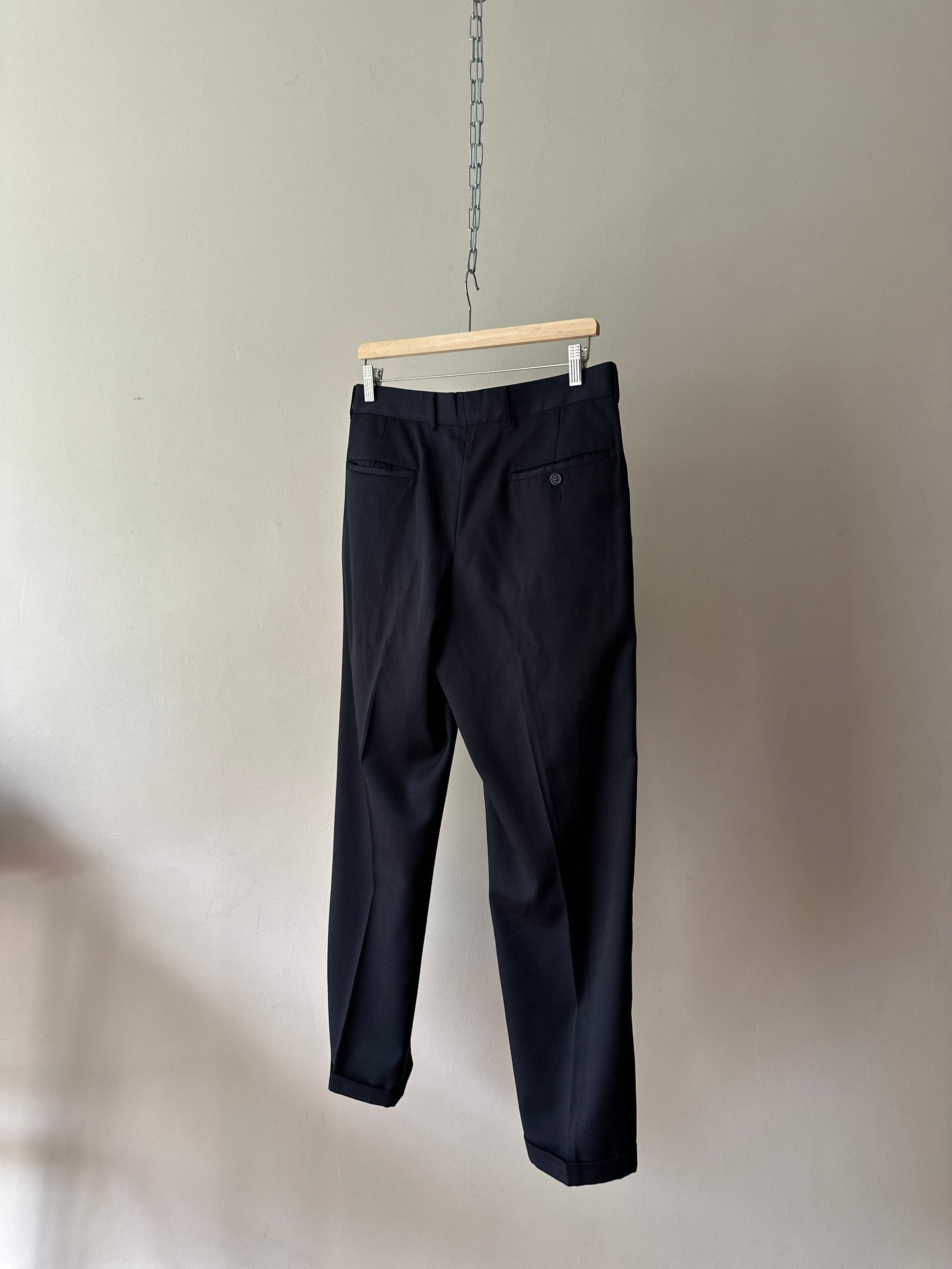 description. another great pair of high waisted suit trousers, navy blue with a front pleat