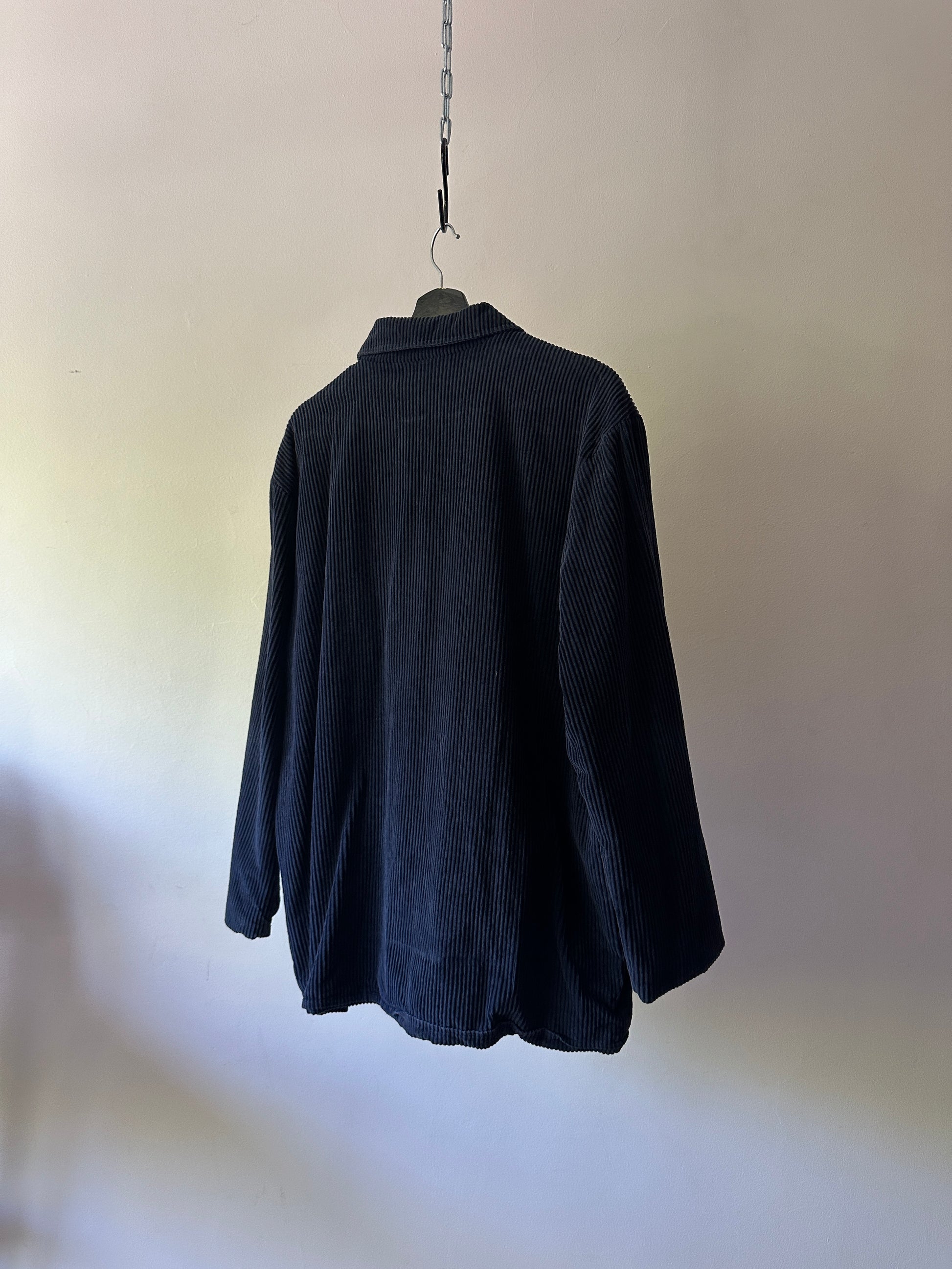 description. we LOVE a corduroy piece. this is such a good coat to have in your closet for winter, autumn, any day, any temperature. the oversize fit, slouchy pockets with button up closure.