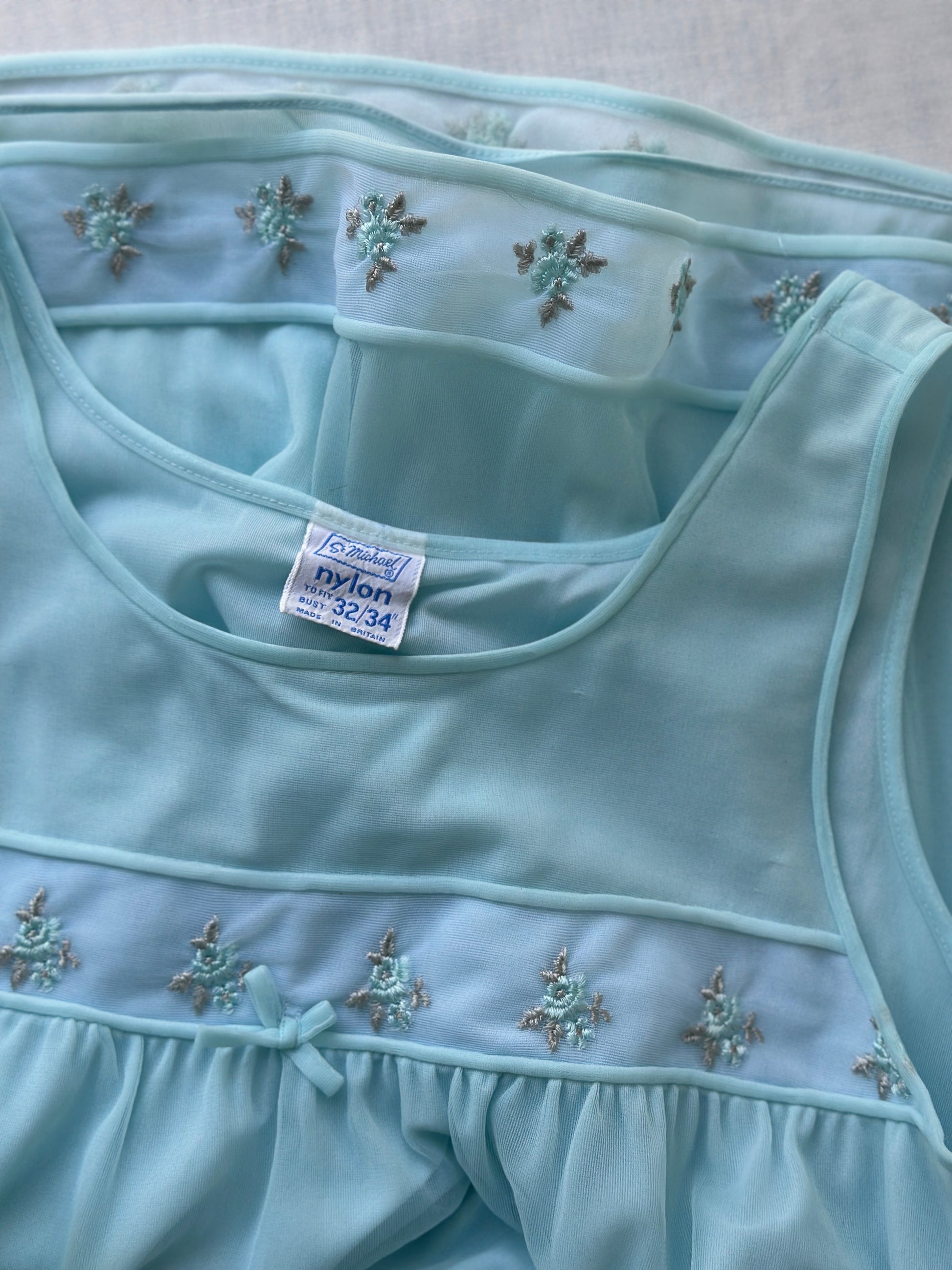 soft aqua two piece vintage night gown