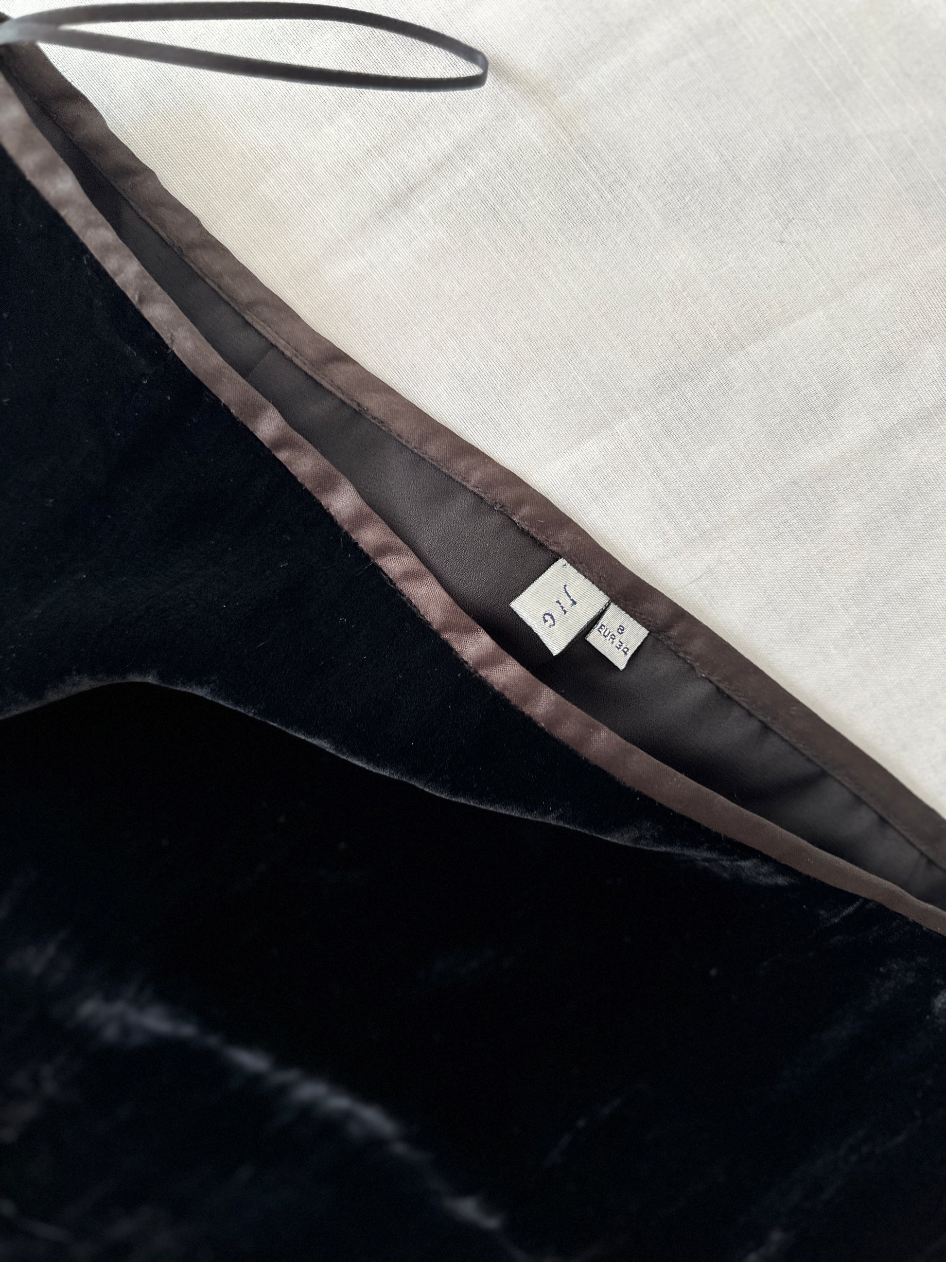 description. a beautiful black velvet skirt with the sweetest beaded tulle-like hem. the length of the skirt comes just past the knees or mid-calve, depending on your height. a perfect piece for anyone with whimsical and etherial style