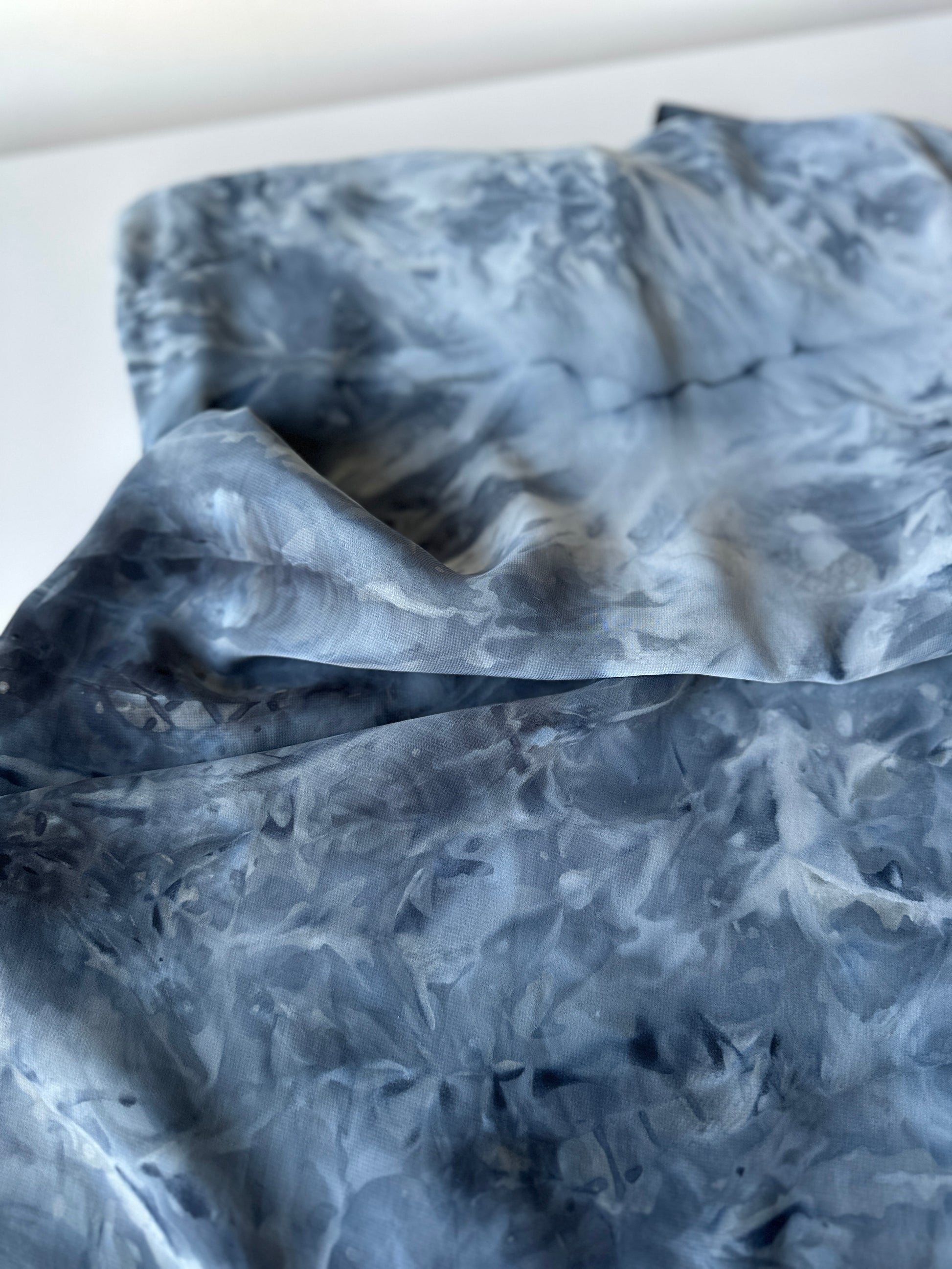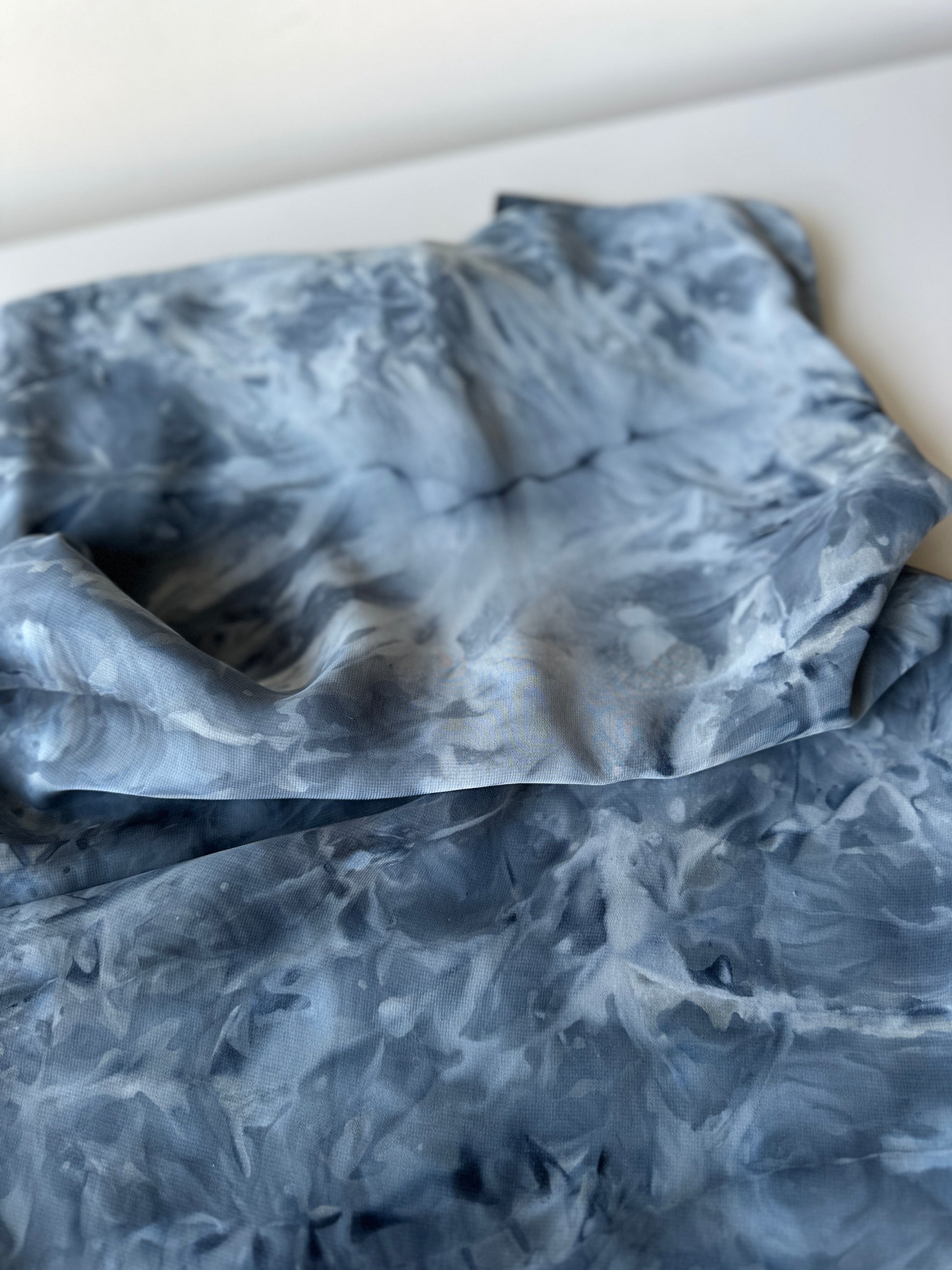 description. a fantastic 90s watercolour-type blue/grey print over the entire dress. with a v-neck cut and mid length fit. this would look adorable with a pair of knee high boots!